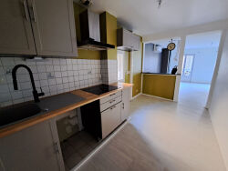 Libre de suite. En centre-ville d'AGEN, appartement à louer dans petit immeuble de deux logements, au deuxième étage sans ascenseur comprenant : une entrée, une pièce de vie, une cuisine ouverte meublée et équipée (hotte, plaque électrique), deux chambres, une salle d'eau et un WC. Le plus : chauffage par clim réversible dans tout le logement.