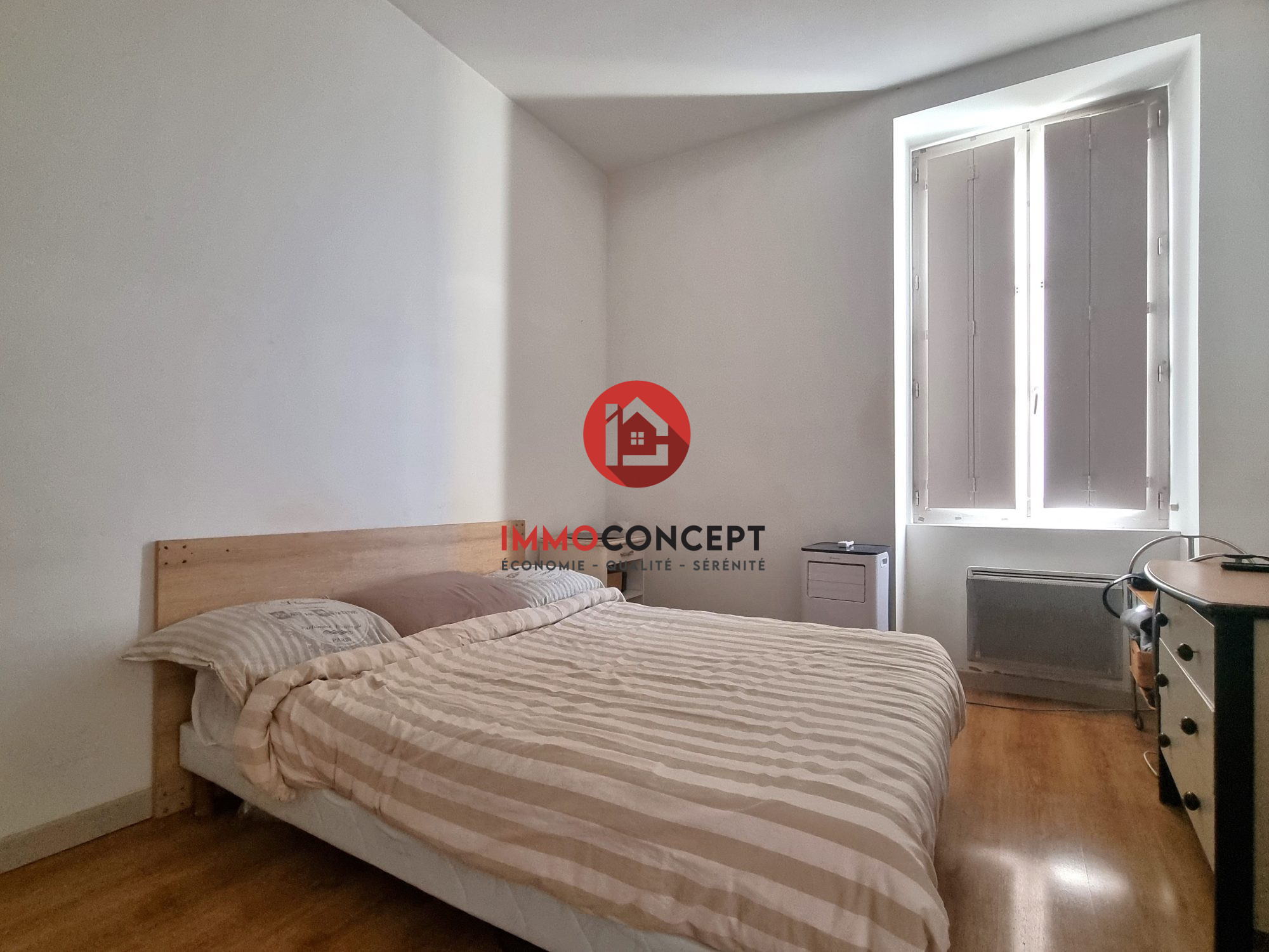 Ales(30) avenue Carnot appartement 78m2 avec climatisation au 1er étage de type 3 bis idéal colocation . Cuisine aménagée indépendante , séjour, salon (utilisable en chambre) chambre, bureau (chambre appoint) ,wc , Salle de bain . Chauffage gaz de ville. Extérieur en commun avec les trois autre locataires de l'immeuble. Cave individuelle. Loyer : 610 CC pour 2 personnes. Ordures ménagères en suppléments sur justificatif. Frais Agence : 366 TTC . Pour colocation à 3 nous contacter.
