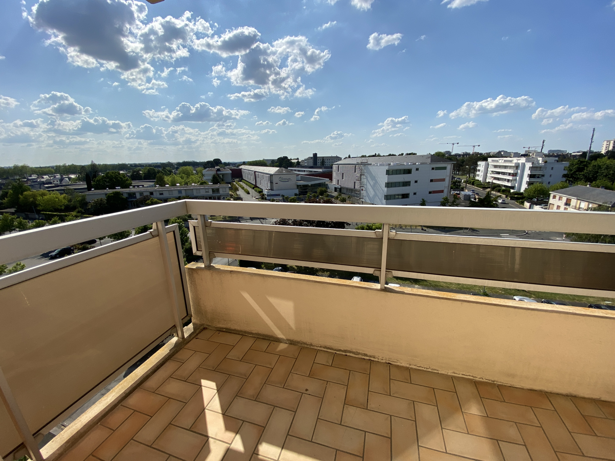 Appartement de 49.16 m² non meublé, situé au 53 avenue du Général Patton à Angers au 4ème étage avec ascenseur, comprenant une entrée, dégagement, un séjour avec cuisine aménagée (meubles hauts et bas + plaque et hotte + réfrigérateur), deux espaces nuit, un WC, une salle de bain et une loggia avec une petite table et chaises de balcon. Possibilité d'une place de parking au sous-sol (60/mois).