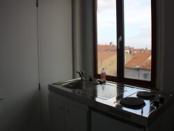 Jolie studio en plein de centre de Béziers, secteur Cathédrale. Au quatrième étage sans ascenseur, l'appartement dispose d'un petit coin cuisine, une petite pièce à vivre, un coin chambre séparé et un salle d'eau avec WC indépendant. Proches de toutes commodités, transports, commerces.
