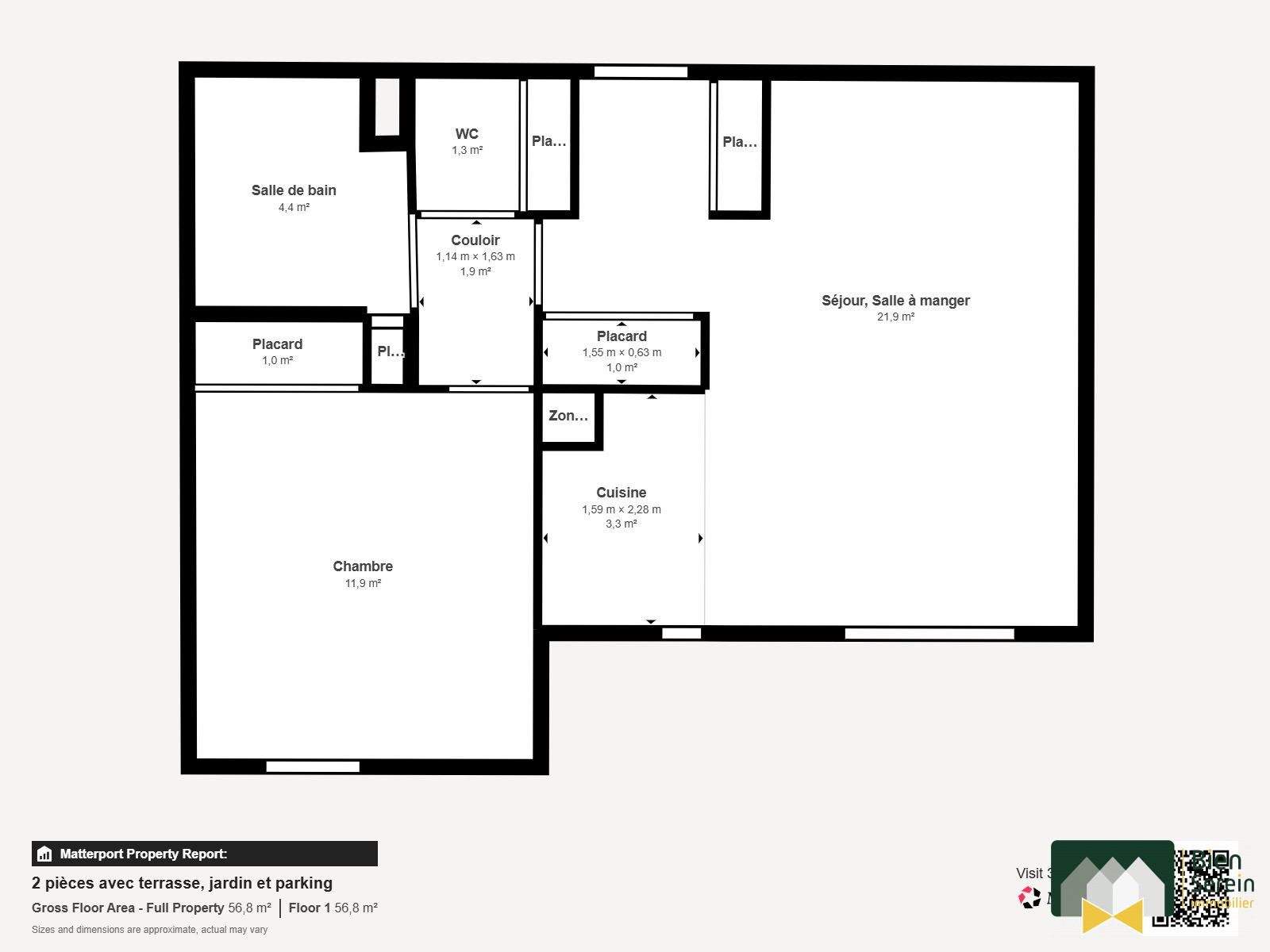 Ce logement se compose d'un séjour lumineux donnant accès direct à une superbe terrasse de 30m2, parfait pour profiter des beaux jours. Il comprend également une cuisine équipée, deux chambres confortables, une salle de bains et des WC séparés.