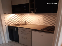 Il se compose d'une kitchenette aménagée et équipée, d'un séjour, d'un coin nuit avec lit mezzanine et bureau, d'une salle de bains ainsi que de WC séparés. Vous apprécierez également sa grande terrasse. Appartement agréable, très bien aménagé et fonctionnel. Chauffage et électricité compris dans les charges. Disponible à partir du 04/03/2026