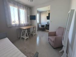 T1 entièrement meublé dans une résidence calme et sécurisée avec gardien (Rue Proudhon) composé d'une entrée avec rangement, d'une pièce de vie, d'une cuisine entièrement équipée et aménagée( four, plaque de cuisson, hotte et réfrigérateur) donnant sur un cellier et d'une salle d'eau avec WC. Une place de stationnement et une cave complètent ce bien. Le chauffage, l'eau chaude et l'eau froide sont compris dans les charges.