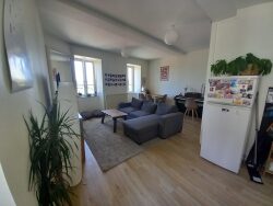 Centre historique, gare et commerces à pied, appartement au 1er étage de 46,48m² habitable, offrant une entrée sur la pièce de vie avec son coin cuisine aménagée et équipée (plaques et hotte), une chambre avec placard, une salle d'eau et un WC séparé. Au sous-sol : cave privative et lingerie commune. Loyer : 610 + 100 de charges (provision d'eau, chauffage collectif, entretien des commun) Libre le 14/07/2026