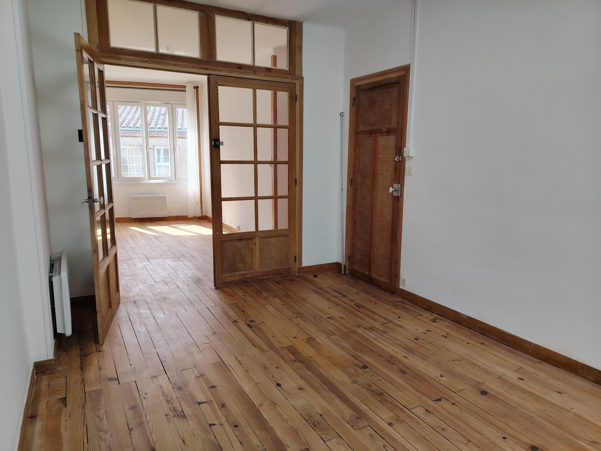 Centre historique, gare et commerces à pied, appartement au 1er étage de 46,48m² habitable, offrant une entrée sur la pièce de vie avec son coin cuisine aménagée et équipée (plaques et hotte), une chambre avec placard, une salle d'eau et un WC séparé. Au sous-sol : cave privative et lingerie commune. Loyer : 610 + 100 de charges (provision d'eau, chauffage collectif, entretien des commun) Libre le 14/07/2026