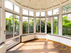 Rue de Reims à Colmar - Appartement duplex T7 comprenant entrée, salon, séjour, cuisine ouverte, véranda, 4 chambres, 2 WC, 1 salle d'eau, 2 balcons, terrasse, jardin, 1 garage et une cave au sous-sol.
