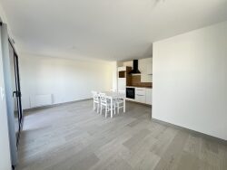 Au 1er et dernier étage d'une petite copropriété neuve, un appartement MEUBLÉ (au minimum) de type 3 comprenant : une pièce de vie avec cuisine aménagée et équipée donnant accès à une terrasse couverte de 14m², un dégagement desservant 2 chambres, une salle d'eau avec sèche serviette et WC indépendant. Logement soumis à la GLI (Garantie Loyer Impayé)