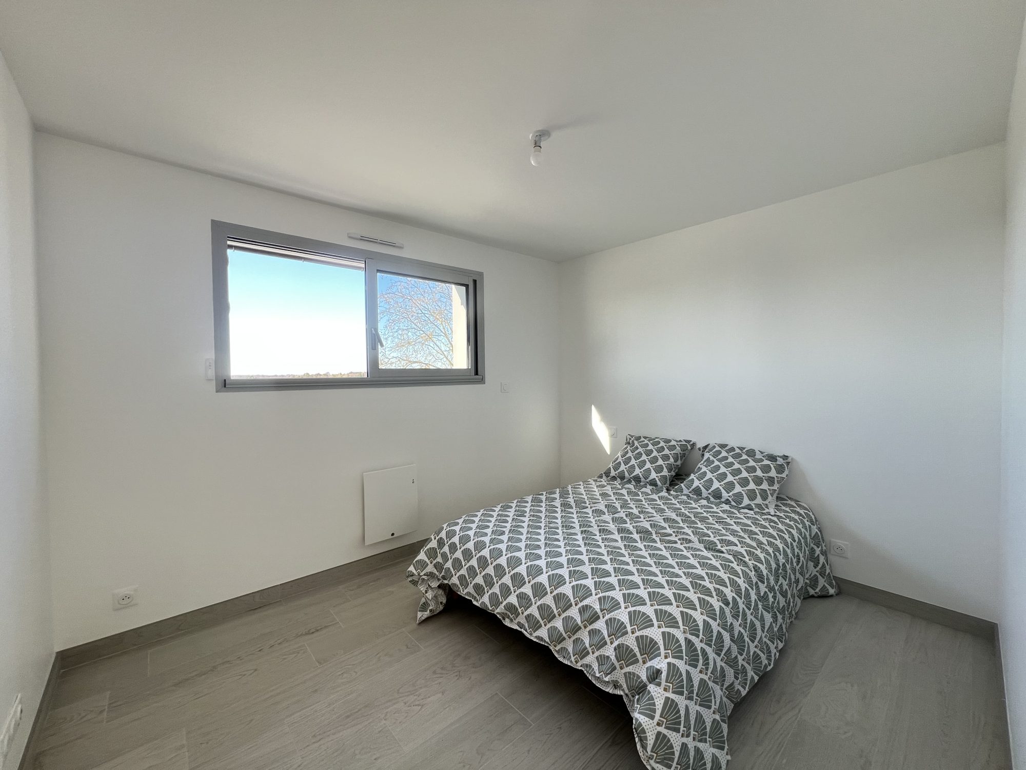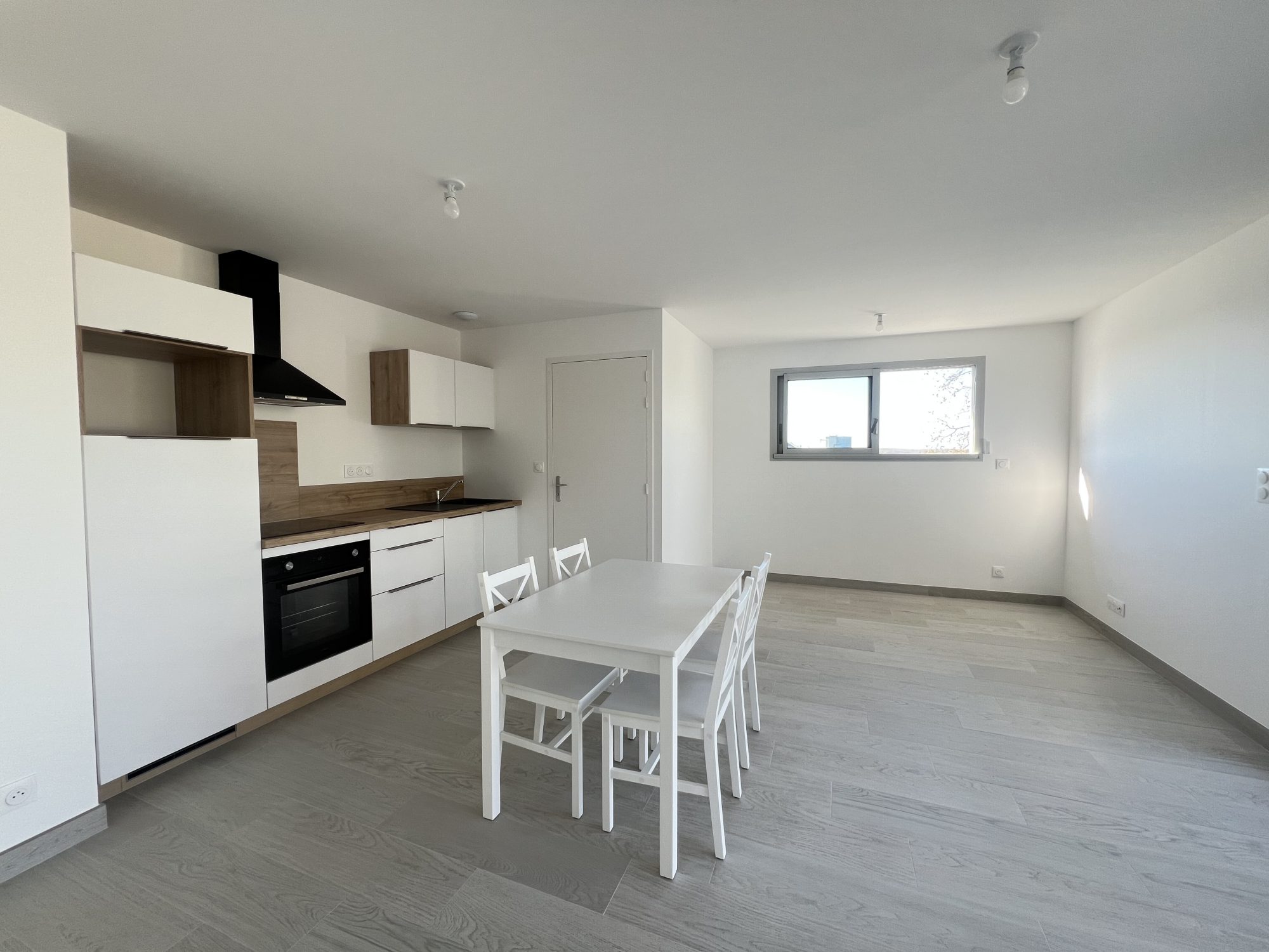 Au 1er et dernier étage d'une petite copropriété neuve, un appartement MEUBLÉ (au minimum) de type 3 comprenant : une pièce de vie avec cuisine aménagée et équipée donnant accès à une terrasse couverte de 12m², un dégagement desservant 2 chambres, une salle d'eau avec sèche serviette et WC indépendant.