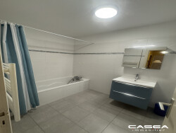 Le couloir dessert une grande chambre lumineuse elle aussi avec placard une salle de bains entièrement neuve,un toilette séparé et de nombreux placards.