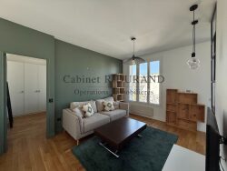 Porche gare et commerces, appartement MEUBLE de deux principales comprenant une entrée, un séjour, une cuisine aménagée et équipée, une chambre, une salle de bains et un WC. Cave et parking en sous-sol. Libre le 1er Avril 2026