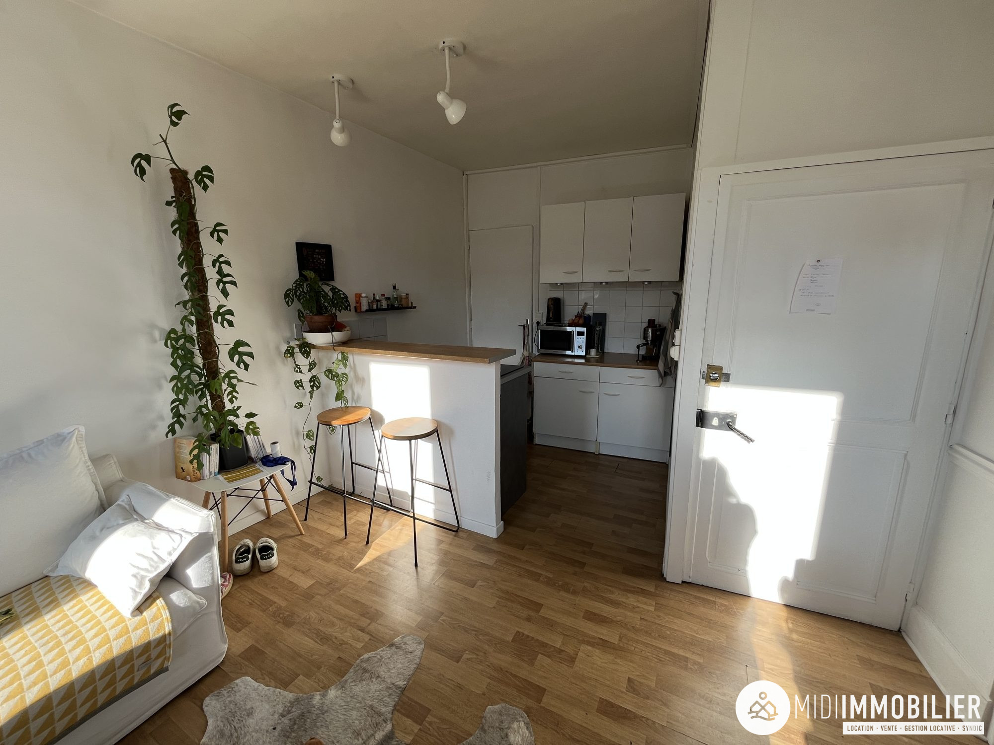 T1 meublé de 28 m² entièrement rénové, situé au 1er étage d'un immeuble sécurisé, à seulement 8 minutes à pied du centre-ville de Graulhet. Il se compose d'une cuisine aménagée et entièrement équipée, ouverte sur un séjour lumineux. Un coin nuit, une salle d'eau avec WC, ainsi qu'un dressing à l'entrée complètent le logement.