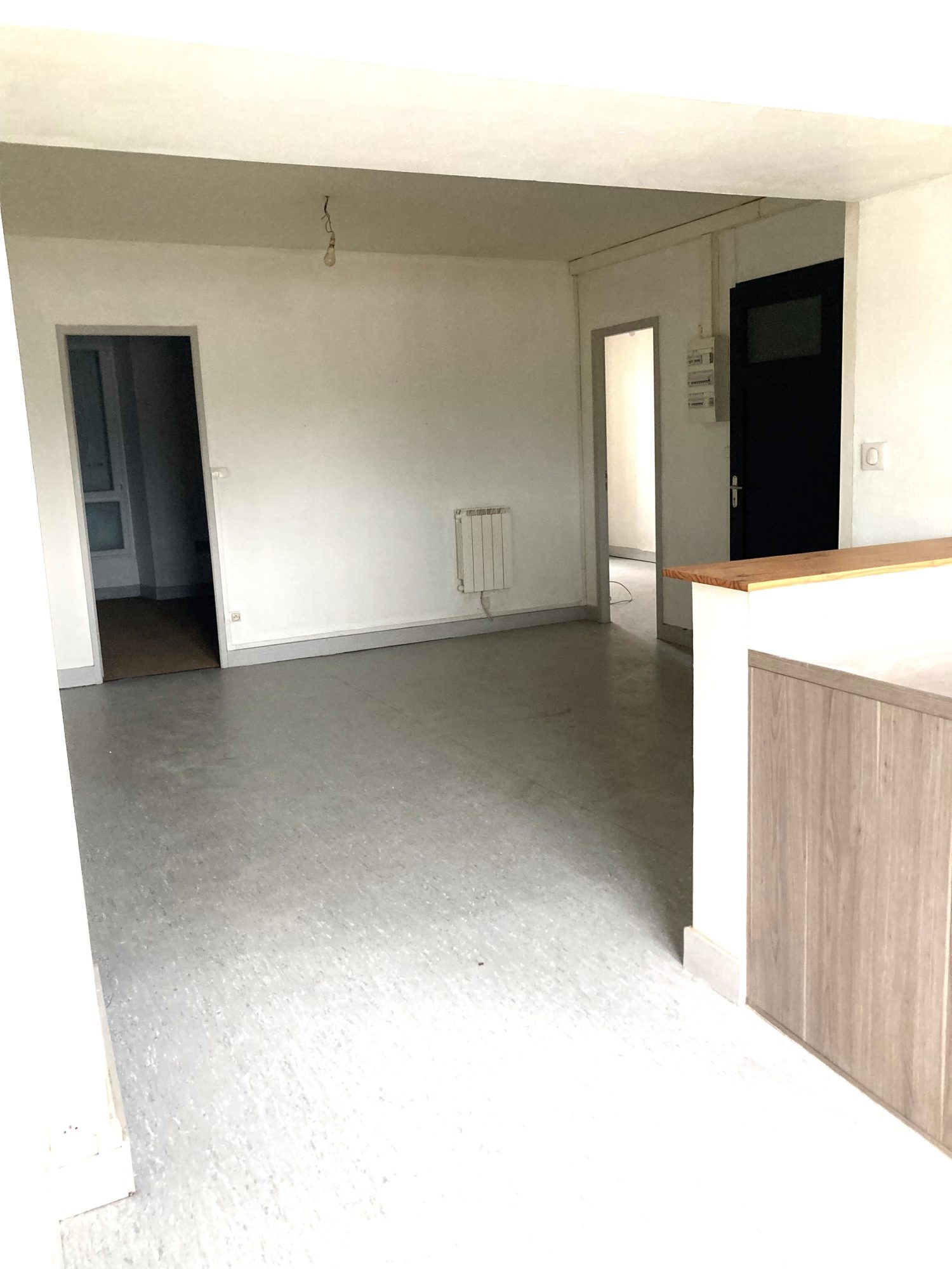 GUITRES - Appartement d'environs 55m² situé en plein centre de Guîtres. Proche des commerces et commodités. A 10min de Coutras, 10min de Libourne et de l'A89. Il est composé d'une cuisine aménagée et semi-équipée ouverte sur la pièce de vie, deux chambres, un bureau, une salle d'eau avec un WC. LIBRE LE 8 MARS 2026