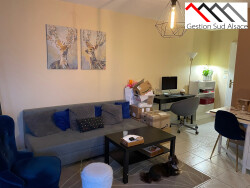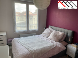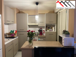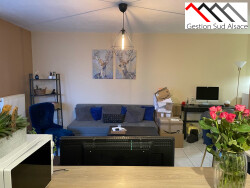 Au 1er étage sans ascenseur, comprenant : une entrée avec placards, une cuisine équipée ouverte sur le séjour (hotte, four, plaques vitrocéramique) avec balcon, une chambre, une salle de bains, 1 Wc séparé, chauffage individuel gaz, une cave, une place de parking, double vitrage Pvc.