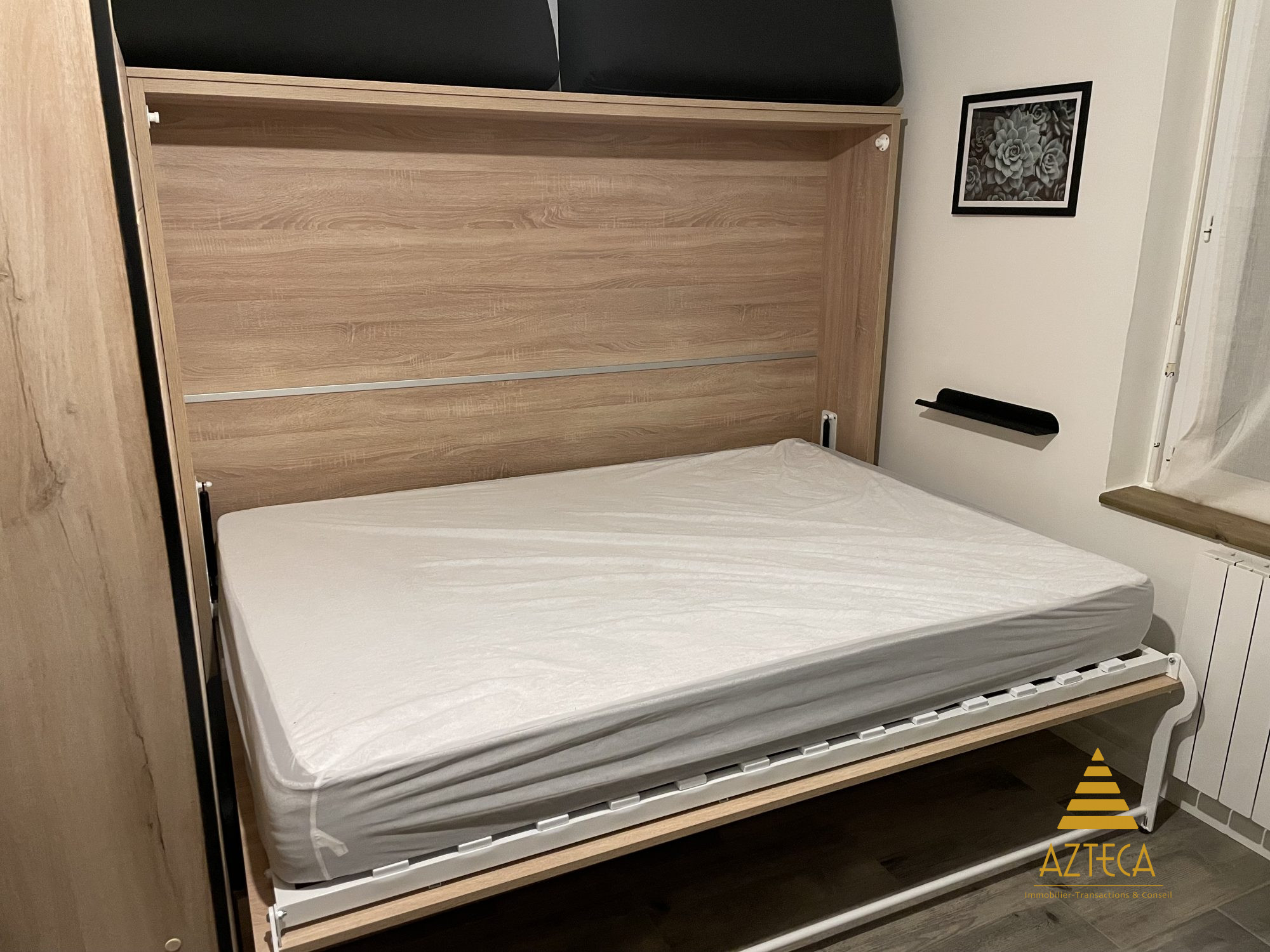 Studio lumineux avec cuisine séparée.