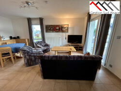 Découvrez ce Magnifique Appartement Meublé à Kembs KEMBS, 2 PIECES DE 52 M2 ENTIEREMENT MEUBLE, .... Au Rez de chaussée, 2 pièces entièrement meublé comprenant : une entrée avec placards, une cuisine équipée ouverte sur le séjour (plaques vitrocéramique, hotte, four, réfrigérateur, meubles hauts et bas), avec un accès à la terrasse, une salle d'eau avec un Wc, chauffage individuel gaz, un garage, une place de parking privative