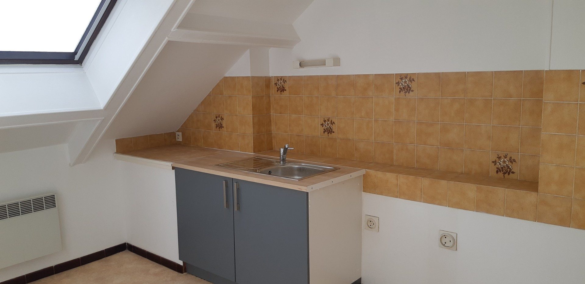 Proximité commerces, appartement de type 3, en duplex, offrant cuisine meublée, séjour. A l'étage : 1 chambre, salle d'eau avec WC, 1 bureau. Chauffage électrique. 1 place de stationnement. Disponible dès 1er décembre
