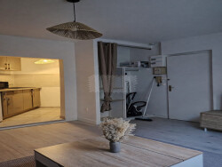 Le logement se compose d'une pièce de vie lumineuse avec canapé/lit (rangements intégrés), un grand placard à l'entrée, d'un espace repas, d'un coin cuisine et d'une salle d'eau avec WC.