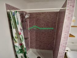 Maison de village aux Olives T2 meublé à la location, séjour avec canapé et coin repas, cuisine équipée avec frigo, gazinière, four, micro-ondes et vaisselle incluse, chambre avec lit double et armoire de rangement. Salle de bain avec douche et wc. Parkings, Commerces, écoles, arrêt de bus à proximité.