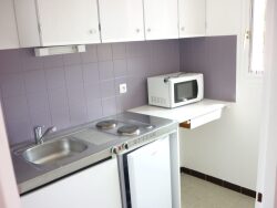 Appartement type F1 avec hall d'entrée placard, une pièce à vivre donnant sur balcon, une petite cuisine séparée, une salle d'eau-WC et un box pour la voiture.
