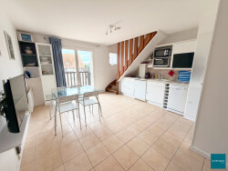 Appartement T2 duplex meublé comprenant au rez-de-chaussée une entrée, un séjour et un coin cuisine aménagée et équipée et WC.