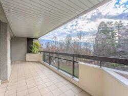 Meylan - Résidence Les Allées de l'Hermitage - 16 Allée de la Praly. Dans un écrin de verdure au calme, copropriété de standing sécurisée, vidéophone, terrain de tennis et parc privé avec étang. Au 3ème étage, très bel appartement 5 pièces, lumineux et traversant de 119m², composé d'un hall d'entrée, d'une cuisine équipée (plaques vitrocéramiques, four, hotte, lave-vaisselle) et d'un grand séjour de 33m² avec une terrasse donnant sur le parc, exposée sud-ouest. Quatre chambres avec placards donnant sur une seconde terrasse, dont une chambre parentale avec salle de bain, un wc séparé, et salle d'eau avec wc. Prestations de qualité, marbre, parquet, et nombreux rangements. Garage en sous-sol et cave. Nombreux parkings extérieurs libres et sécurisés. Chauffage individuel électrique avec base collective (résille au sol collective et convecteurs individuels). Eau froide et eau chaude individuelles (cumulus électrique). Transports en communs à proximité.