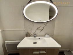 La salle d'eau, moderne et élégante, comprend un WC séparé, offrant un confort supplémentaire. Les finitions de haute qualité et les matériaux soigneusement choisis ajoutent une touche de luxe à cet appartement déjà charmant.