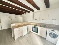 L'appartement situé au 1er étage et se compose d'un séjour lumineux, d'un espace cuisine équipée et aménagée, d'un placard, d'une salle d'eau avec WC et d'une chambre.