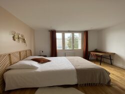 La chambre est lumineuse et confortable, équipée d'un lit, d'un bureau et d'une armoire ; parfaite pour étudier, télétravailler ou simplement se détendre dans un cadre calme.