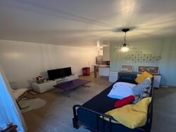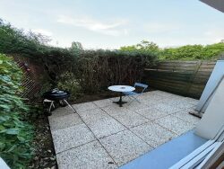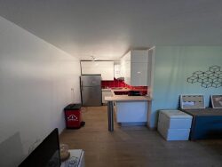 Entrée, séjour, coin cuisine, salle de bain et WC. Logement en RDC avec terrasse + place de stationnement.