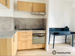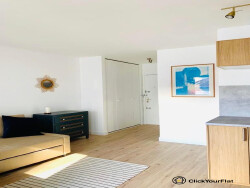 ClickYourFlat est ravi de vous présenter ce studio entièrement meublé situé au 3ème étage d'un immeuble avec ascenseur. La pièce principale est un espace de vie fonctionnel et lumineux, équipé d'un canapé lit double, d'une télévision, d'un coin repas et de rangements. Une cuisine entièrement équipée complète le studio.