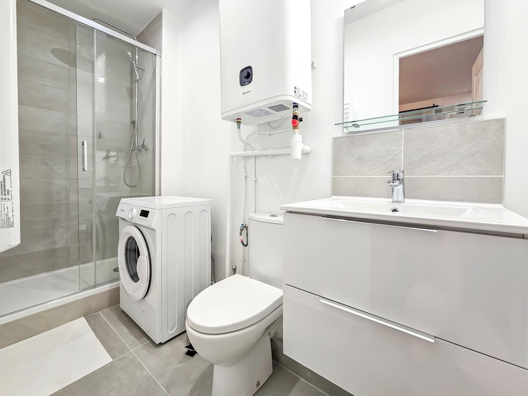 Pièce de vie agréable et fonctionnelle Cuisine équipée (plaques, four, réfrigérateur, rangements) Salle d'eau moderne avec douche vitrée et WC Double vitrage, chauffage individuel électrique Immeuble entretenu, accès sécurisé