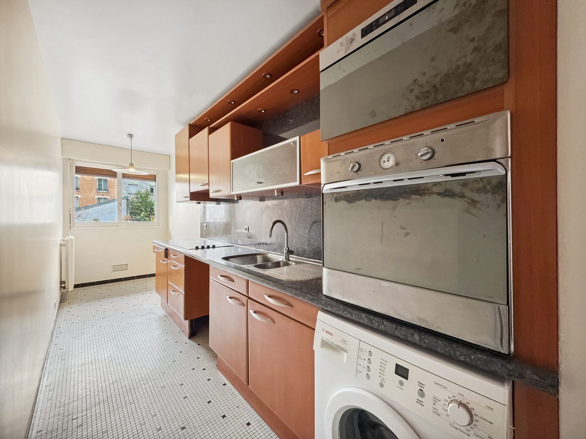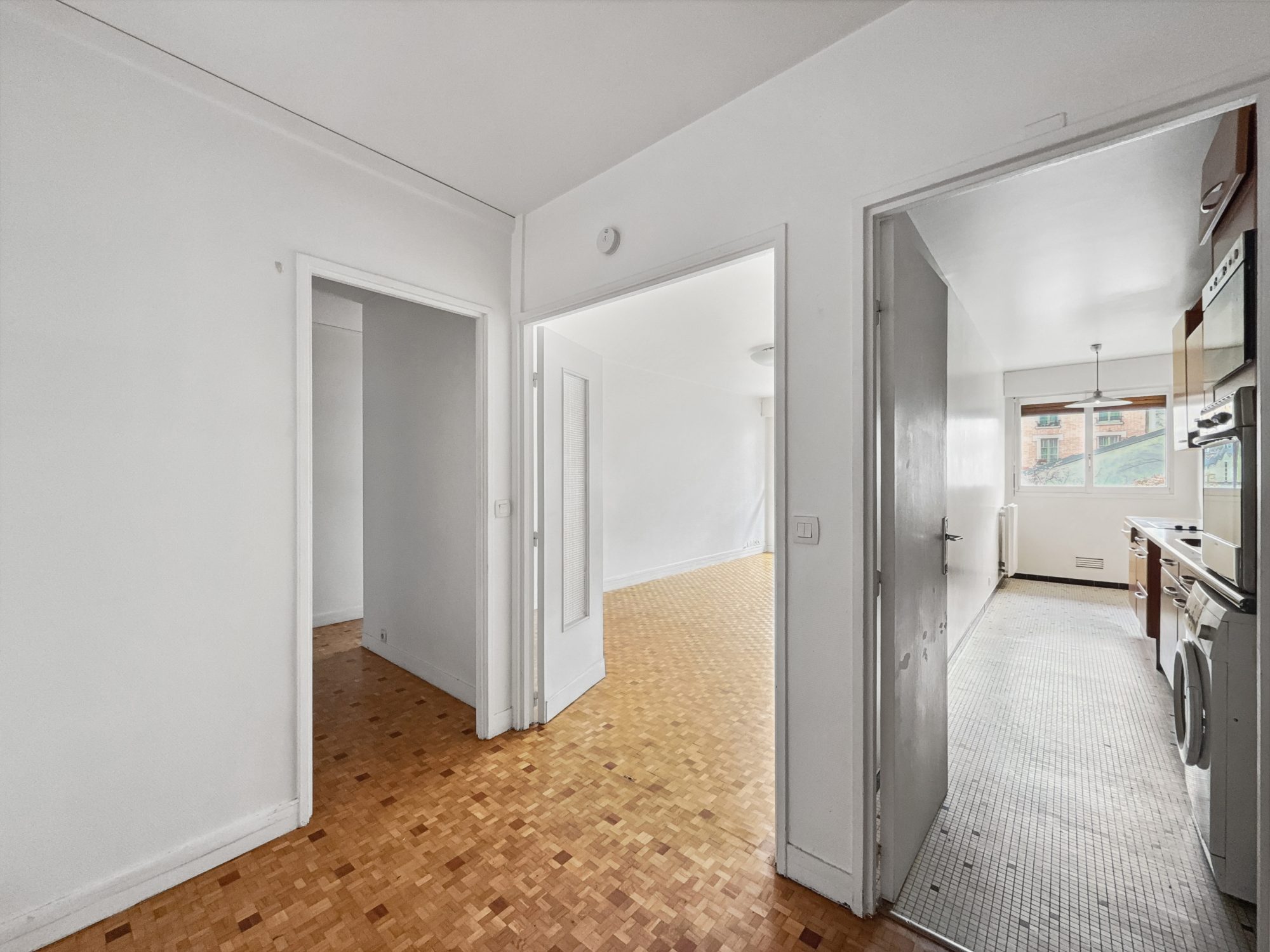 L'appartement se compose d'un séjour spacieux de plus de 20m², de deux chambres avec de grands placards donnant sur cour, dont une chambre commandée, une cuisine indépendante entièrement équipée, une salle de bain et un WC séparé.