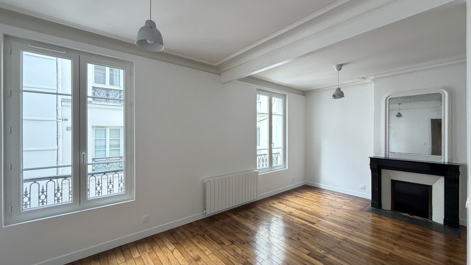 Rue Barbanègre - Bel appartement de trois pièces traversant, entièrement refait à neuf avec goût, situé au rez-de-chaussée d'un immeuble d'une rue calme, à 350m du métro 7 - Corentin Cariou, à 250m du quai de l'Oise et de ses nombreuses terrasses et péniches.