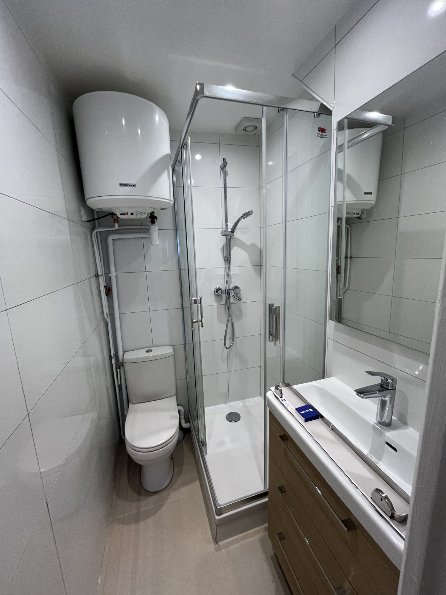?? Le logement se compose de : Une pièce principale lumineuse Un espace dressing Une salle d'eau avec WC privative Un réfrigérateur individuel ?? À noter : la cuisine est partagée avec les autres appartements de l'étage.? Une buanderie commune est également à disposition, équipée de 2 lave-linges et 2 sèche-linges.