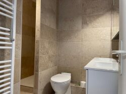 A l'étage, 1 chambre de 13 m², 1 de 10 m² et 1 de 9,50 m² (lit simple) - Elles disposent toutes d'un lit (avec couette et oreillers), 1 grand placard, 1 bureau et petits meubles de rangement - A l'étage se situe également la salle d'eau (entièrement rénovée en 2023 avec double vasques et douche) et sanibroyeur. Au RDC un salon séjour cuisine ouverte de 27 m² avec balcon donnant sur la végétation, un WC, une buanderie avec machine à laver séchante. La cuisine est équipée d'une plaque induction, four, four micro ondes, lave vaisselle, machine à café, frigidaire, congélateur. L'appartement dispose aussi d'un local à vélos fermé et de parkings libre.