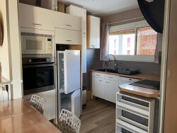 A l'étage, 1 chambre de 13 m², 1 de 10 m² et 1 de 9,50 m² (lit simple) - Elles disposent toutes d'un lit (avec couette et oreillers), 1 grand placard, 1 bureau et petits meubles de rangement - A l'étage se situe également la salle d'eau (entièrement rénovée en 2023 avec double vasques et douche) et sanibroyeur. Au RDC un salon séjour cuisine ouverte de 27 m² avec balcon donnant sur la végétation, un WC, une buanderie avec machine à laver séchante. La cuisine est équipée d'une plaque induction, four, four micro ondes, lave vaisselle, machine à café, frigidaire, congélateur. L'appartement dispose aussi d'un local à vélos fermé et de parkings libre.