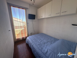 Appartement meublé de type T1-cabine situé au troisième et dernier étage d'un immeuble secteur plage, comprenant: séjour con cuisine aménagé et équipé, balcon avec vue mer, cabine avec un deuxième balcon, salle de bains, WC séparé, dégagement avec rangement, climatisation. place de parking. disponible immédiatement. Estimation des dépenses annuelles usages énergétiques minimum : 517 /an. Estimation des dépenses annuelles usages énergétiques maximum : 699 / an. Les informations sur les risques auxquels ce bien est exposé sont disponibles sur le site GEORISQUES : www.georisques.gouv.fr