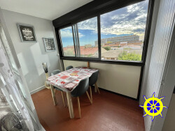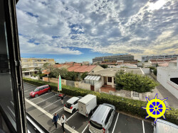 Dans résidence coté plage, au 2eme étage avec petite vue mer, spacieux studio cabine entièrement rénové, entrée avec placard, salle d'eau avec douche à l'italienne, coin nuit avec lit de 2 places, salon, loggia et superbe cuisine équipée, libre de suite, parking collectif, loyer 440 + 10 de charges (ordures ménageres