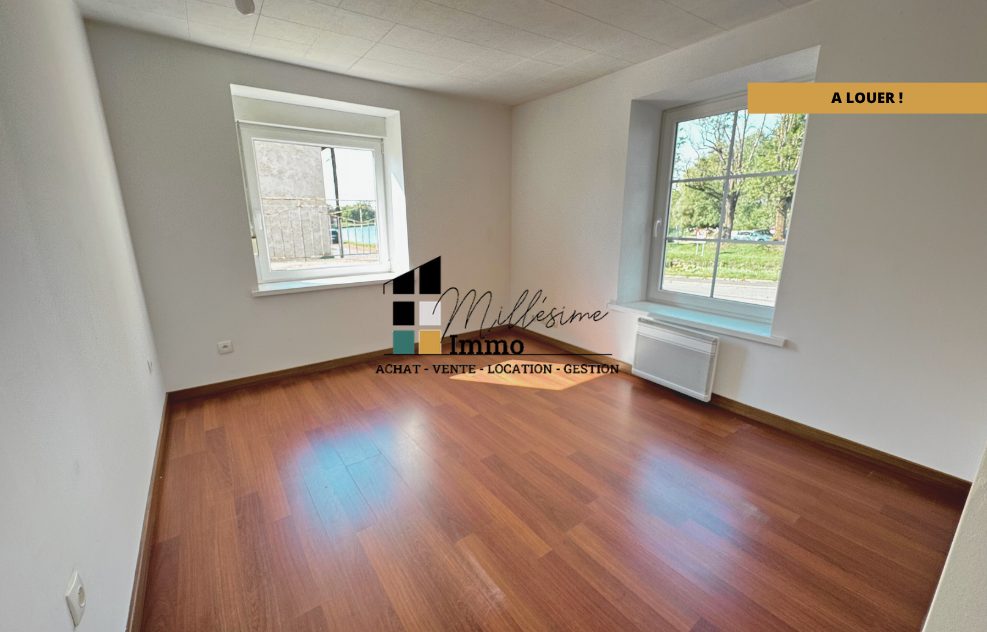 Appartement de type F3 situé au centre-ville de Saint-Avold dans une rue calme, comprenant un salon-séjour, une cuisine équipée et aménagée, deux chambres, une salle de bains et un WC.