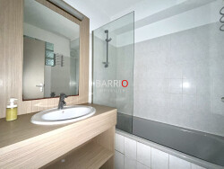 Situé en rez-de-chaussée d'une résidence sécurisée avec piscine à Saint - Cyprien plage, cet appartement 3 pièces se compose d'une entrée, d'un séjour avec coin cuisine équipée, ouvrant sur une terrasse exposée sud-est, de deux chambres avec placards, d'une salle de bain et de WC séparés. L'appartement offre également plusieurs rangements pratiques ainsi qu'une place de parking privative.