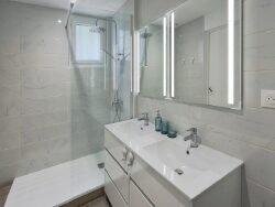 Deux chambres cosy de 9 m² et 10 m². Salle d'eau avec douche à l'italienne et double vasque et WC séparés.