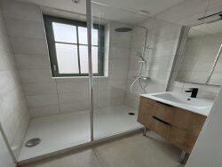 Au 1 er étage sans ascenseur un appartement de type 3 refait à neuf d'une surface de 71.08 m² habitables comprenant : Une entrée (7.34 m² env), cuisine aménagée et équipée (four + induction + hotte + réfrigérateur + micro-onde + lave-vaisselle) (10.64 m² env), salon/séjour avec rangements (22.07 m² env), 2 chambres dont une avec dressing (12.39 +12.69 m² env), salle d'eau (3.44 m² env) et un wc. L'appartement est chauffé grâce à une pompe à chaleur. Libre début Avril