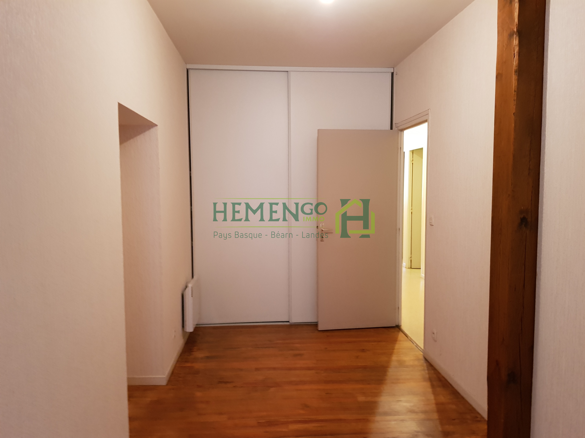 Appartement T2 de 55 m² - Centre-ville - Salies-de-Béarn Situé en plein centre-ville de Salies-de-Béarn, au 1er étage d'un immeuble, cet appartement de type 2 offre une surface de 55 m². Il se compose d'une pièce de vie lumineuse dotée d'un parquet, comprenant une cuisine ouverte aménagée et équipée. Le logement dispose d'une chambre avec placard intégré, d'une salle d'eau et d'un WC indépendant. Deux celliers viennent compléter l'ensemble, offrant des solutions de rangement appréciables. DISPONIBLE MAI 2026