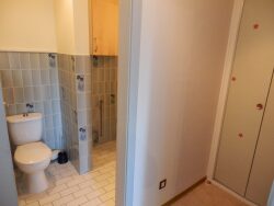 - Une entrée - un dégagement avec placard - une salle d'eau avec toilette et branchement pour le lave linge - une cuisinette avec évier, des rangements, un réfrigérateur et une plaque de cuisson - un séjour