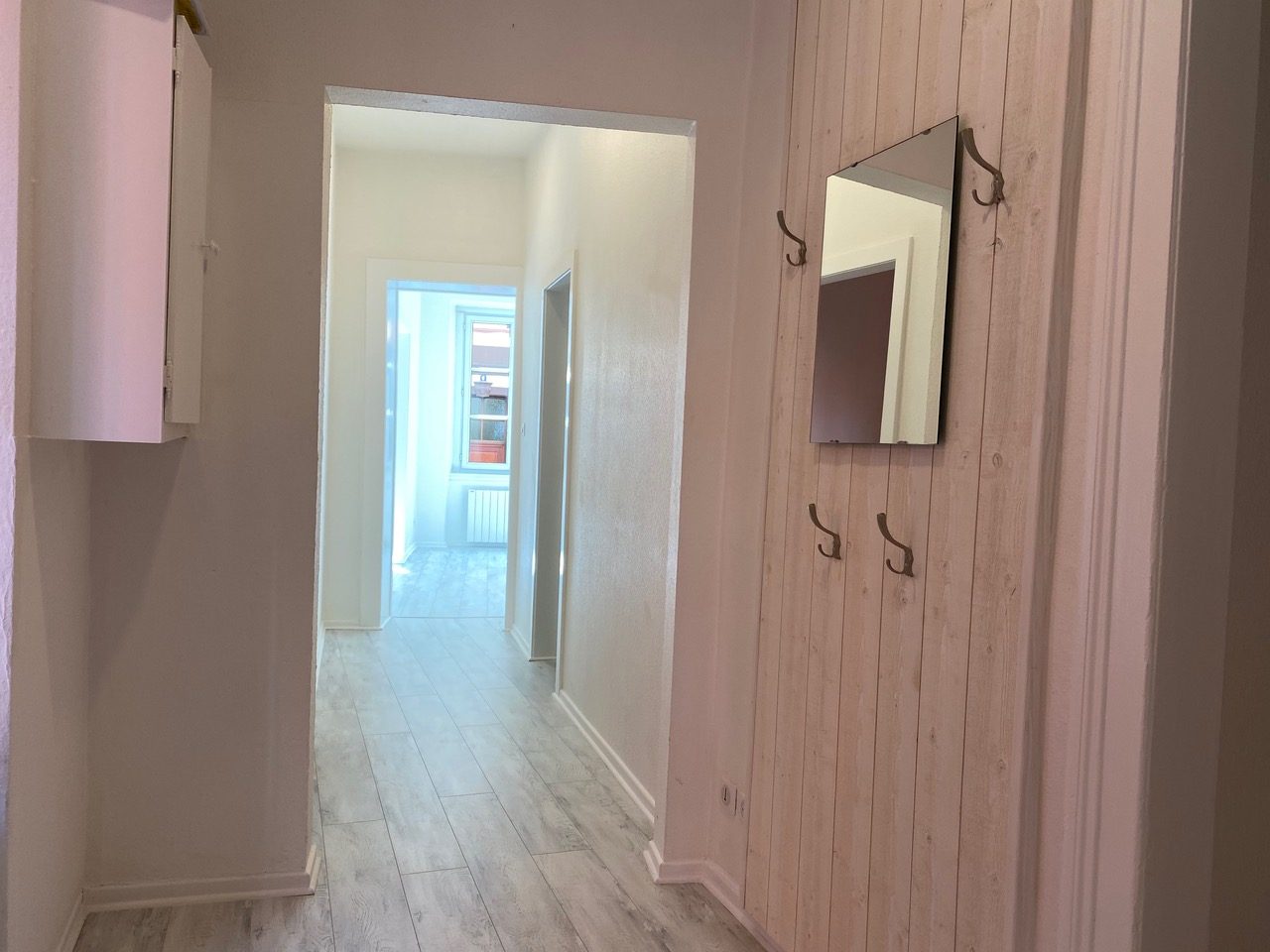 L'appartement se compose de la façon suivante, une entrée avec placard, une cuisine équipée avec accès petit balcon, une salle de bain, un wc séparé, un séjour, 3 chambres, dont deux comuniquantes.