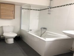 Le coin cuisine, entièrement équipé et meublé avec goût, a été pensé pour votre confort : plan de travail effet bois, plaques de cuisson, réfrigérateur encastré et micro-ondes. Un espace dînatoire convivial avec mange-debout et tabourets hauts vient compléter cet espace. Le studio dispose également d'une salle de bain fonctionnelle et moderne, avec baignoire, pare-douche, meuble vasque et WC.