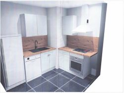L'appartement se compose de la façon suivante, une entrée, une salle de bain avec un wc, 1 chambre, une cuisine équipée (en cours de montage) ouverte sur séjour, un balcon