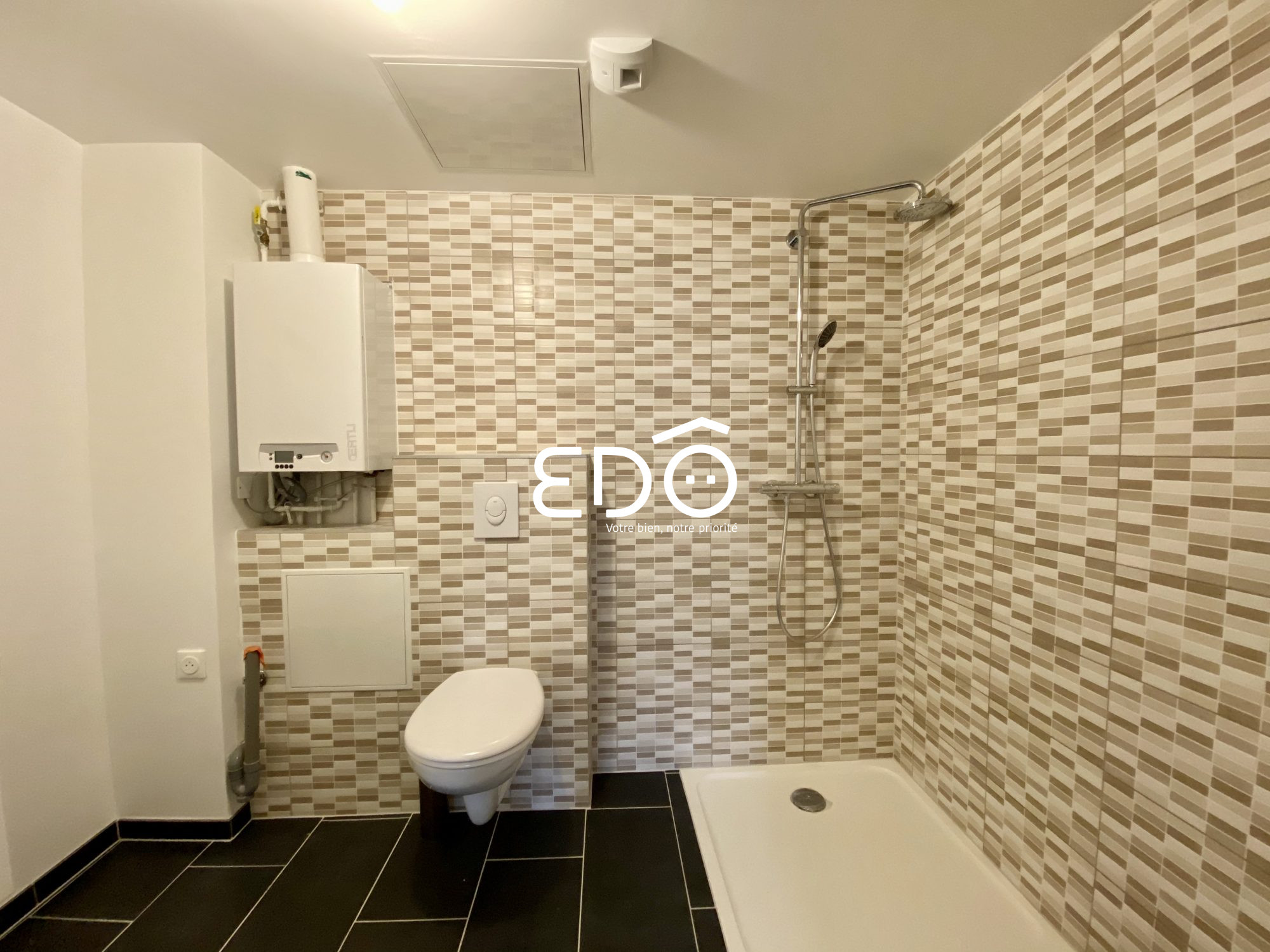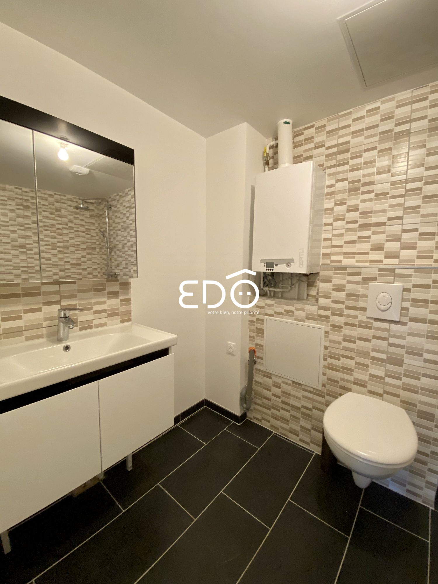 Équipements chambres : Lit confortable, double armoire pour un rangement optimal, bureau avec chaise ergonomique, idéal pour le télétravail ou les études, salle d'eau privative avec douche, vasque avec miroir, sèche-serviette.