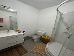 Un séjour lumineux, Une chambre, Une salle d'eau avec douche et toilettes, Un coin cuisine meublé (éléments de rangement, évier, etc.).