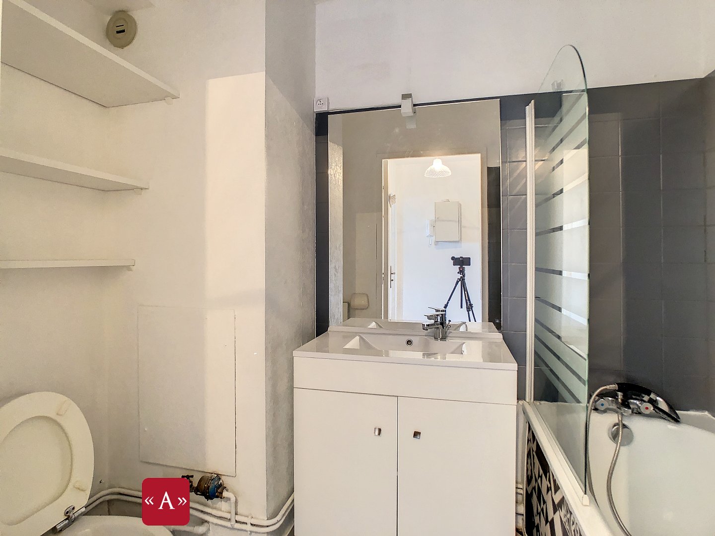 La salle de bains, moderne et fonctionnelle, complète ce bien immobilier avec élégance. Un ascenseur est à votre disposition pour un accès facile à votre appartement. De plus, un stationnement intérieur est inclus, offrant sécurité et praticité au quotidien.